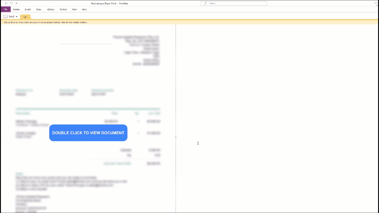 Then we add the fake document image into the OneNote document to make it look legitimate.